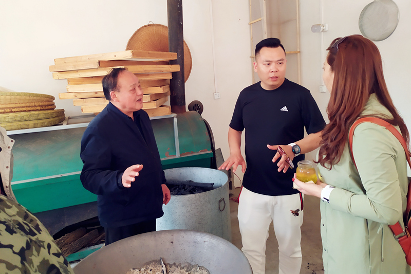 在這個秀美的山村里,周祖宏是個“名人”,他是周氏炒茶家族第四代傳人,憑著一手炒茶絕活,被河南省文化廳評為河南省省級非物質文化遺產(chǎn)項目(信陽毛尖茶采制技藝)代表性傳承人。洛陽開元集團一行來到周老師家里,董事長許明月與周老師親切交談,對制茶、品茶、信陽茶文化等一系列問題做了相互交流。在手工茶坊里集團員工們也興致高昂地觀摩了炒茶師傅高超的手藝,手工炒茶可以使茶的營養(yǎng)成分更高,口感上偏濃,更加耐泡。大家品的是茶,吐出的是都市的困頓與繁雜。在300余畝的茶園中,縷縷茶香沁人心脾,在采茶工的引領下,全體員工愜意自得地體驗采茶的樂趣。